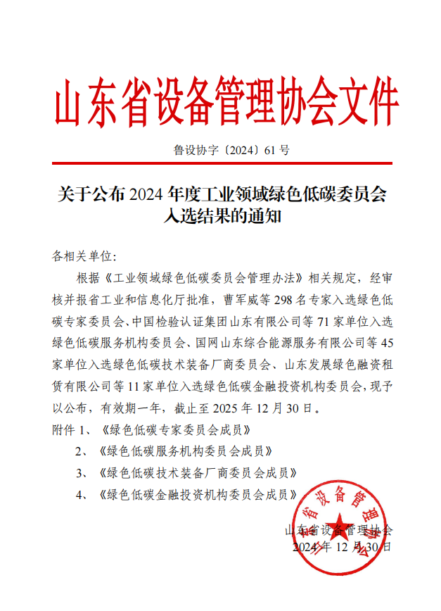 山東省工業(yè)領(lǐng)域綠色低碳委員會(huì)是山東省設(shè)備管理協(xié)會(huì)根據(jù)山東省工業(yè)和信息化廳發(fā)布的《2024年度全省工信領(lǐng)域先進(jìn)適用綠色低碳技術(shù)裝備推廣工作方案》組建,包括專家委員會(huì)、技術(shù)裝備廠商委員會(huì)、服務(wù)機(jī)構(gòu)委員會(huì)、金融投資機(jī)構(gòu)委員會(huì)四個(gè)專業(yè)委員會(huì)。各委員會(huì)成員面向全省工業(yè)領(lǐng)域提供技術(shù)支撐和科學(xué)決策建議,提供綠色低碳技術(shù)裝備專業(yè)資源,并在診斷評(píng)估、技改實(shí)施、金融保障等各個(gè)環(huán)節(jié)提供精準(zhǔn)服務(wù),加大全省工業(yè)領(lǐng)域先進(jìn)適用綠色低碳技術(shù)裝備推廣力度,加快推動(dòng)工業(yè)領(lǐng)域重點(diǎn)用能設(shè)備更新升級(jí)。